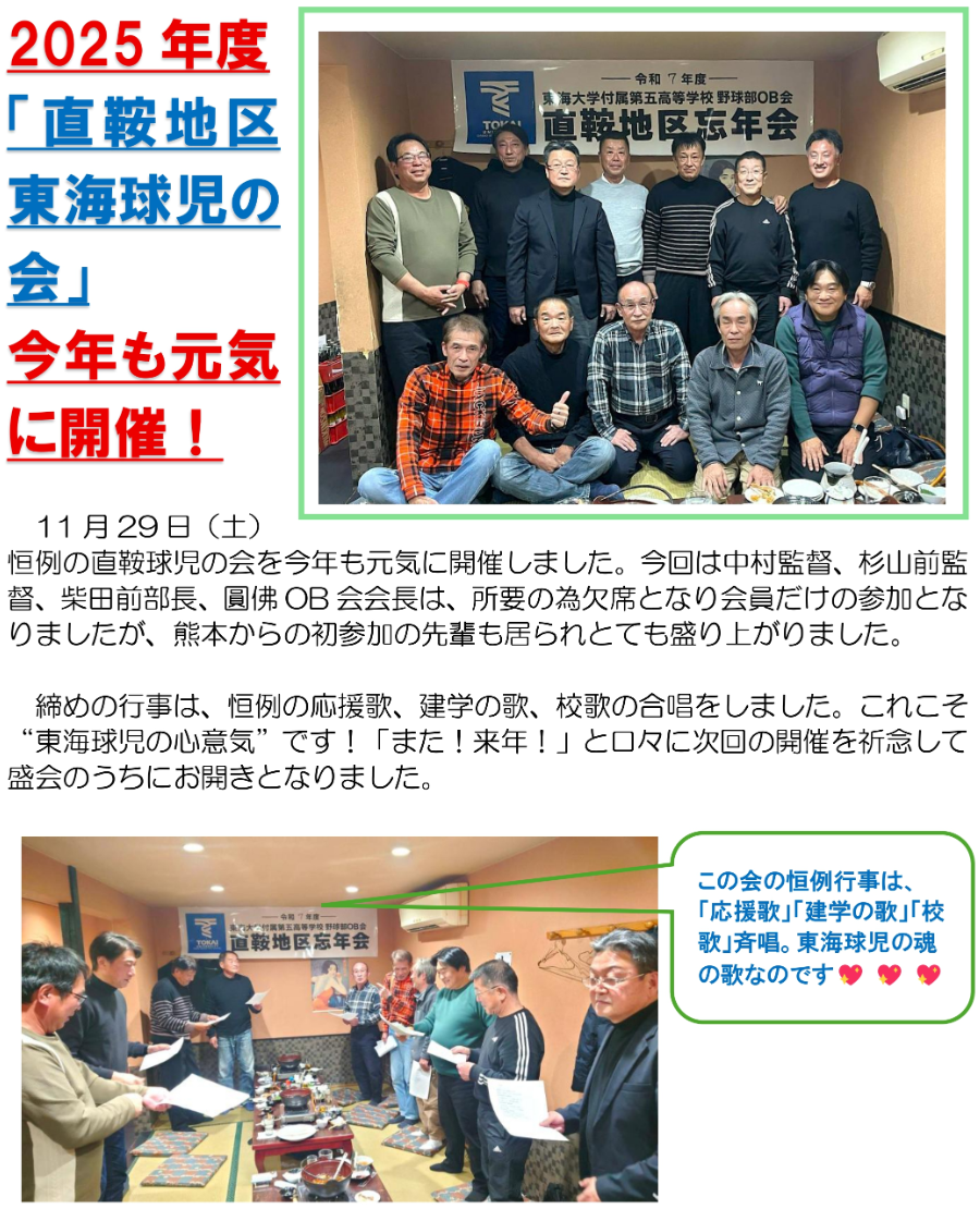 その他 トップページ部会(支部)活動その他2025年度「直鞍地区東海球児の会」今年も元気に開催! その他 2025年12月1日 2025年度「直鞍地区東海球児の会」今年も元気に開催! コメントする コメントをキャンセルメールアドレスが公開されることはありません。 ※ が付いている欄は必須項目です名前 ※ メール ※ サイト コメント ※ Δ 部会(支部)活動 同期会 五高会 その他